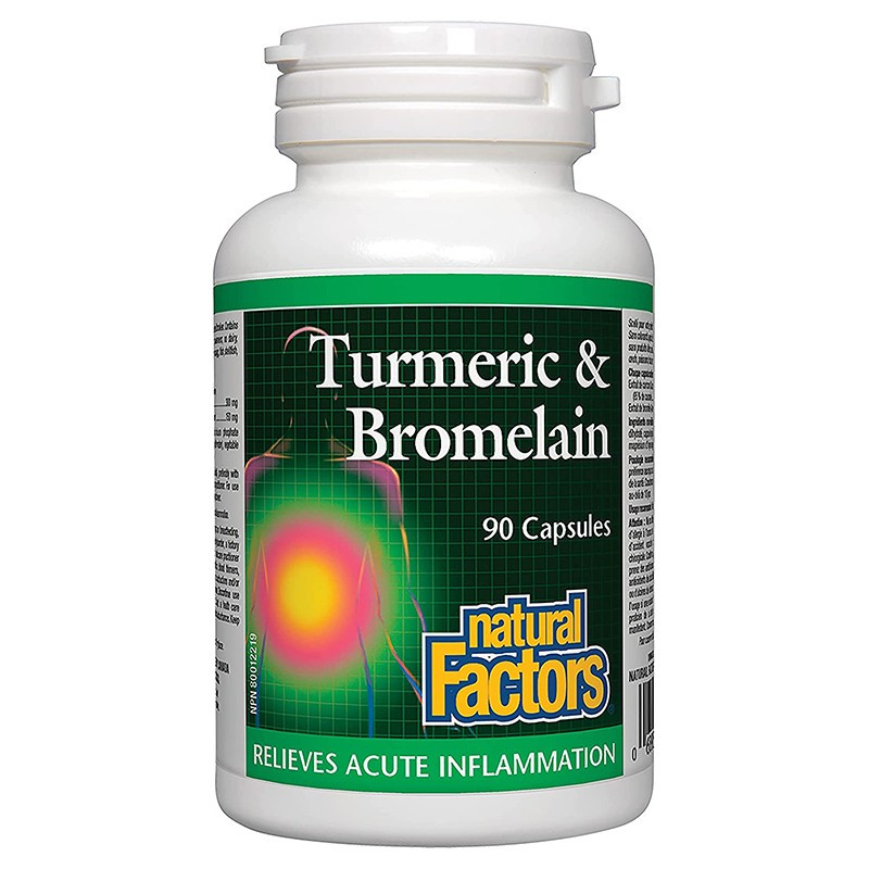 Продуктът на Natural Factors Куркума и Бромелаин е комбинация от два мощни противовъзпалителни агента, които са безопасни, ефективни и много полезни при различни възпалителни състояния. Капсулите могат да се приемат за облекчаване на остро възпаление в храносмилателния тракт или други части на тялото, както и за постоянна ежедневна подкрепа при възпалителни ставни и храносмилателни състояния.