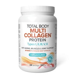Total Body Multi Collagen съчетава пет вида колаген, включително естествена мембрана от яйчени черупки (NEM®), за намаляване на бръчките в рамките на 28 дни, насърчаване на здрава съединителна тъкан и облекчаване на болките в ставите, свързани с остеоартрит. Тази комбинация от различни видове колаген е чудесна за кето и палео диети. Всяка лъжица осигурява 10 g клинично изследван хидролизиран колаген на прах с неутрален вкус, идеален за добавяне към смутита, печива и напитки. Не съдържа ГМО, хормони, антибиотици или BPA.