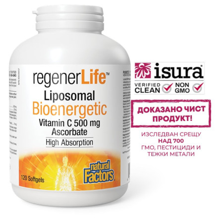 Продуктът осигурява 500 mg липозомен витамин C с висока бионаличност във всяка капсула за поддържане на костите, зъбите, хрущялите, венците и имунното здраве, както и за антиоксидантна защита срещу окислително увреждане, свързано с преждевременно стареене. Liposomal Bioenergetic Vitamin C е част от специално създадената линия Regener Life за дълголетие и подмладяване на цялото тяло. Тази формула е без изкуствени консерванти или подсладители, не е ГМО и не съдържа глутен.