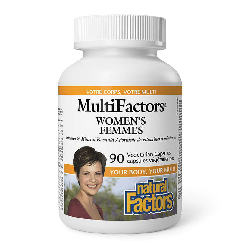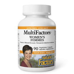 Женската формула с витамини и минерали MultiFactors e подходяща за справяне със специалните нужди на жени под 50 години. Съдържа уникална комбинация от витамини и минерали, с добавени фитонутриенти, за увеличаване на антиоксидантната активност и същевременно поддържане на здравето на жените. В комплекса са включени оптимални нива от над 35 витамина, минерали, ензими, антиоксиданти и билкови екстракти. MultiFactors за жени гарантира висококачествени съставки и съдържа правилните съотношения на витамини, минерали и хранителни вещества за енергизиране, облекчение от стреса, предпазване от дегенерация на органи и помощ при превенцията на хронични заболявания. В допълнение, той съдържа бетаин хидрохлорид (HCL) и смес от храносмилателни ензими, за да помогне за максималното усвояване на полезните вещества. Betaine HCL помага да се компенсира ниското производство на стомашна киселина, нещо, което традиционно се наблюдава сред възрастните хора, но става все по-често срещано и при по-младите. Формулата е обогатена с концентрата от горски плодове BerryRich, който включва екстракти от нар, грозде, синя и червена боровинка, ягоди и малини за подпомагане на пикочните пътища и ограничаване на възпалителните процеси в организма.