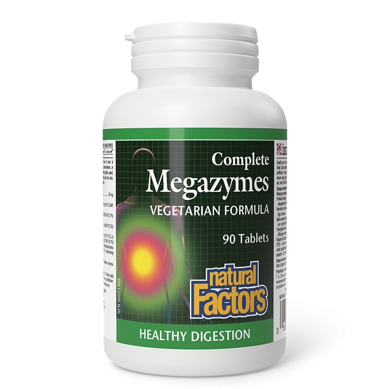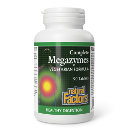 Complete Megazymes от Natural Factors съдържа набор от ключови храносмилателни ензими, които подпомагат разграждането и усвояването на хранителните вещества