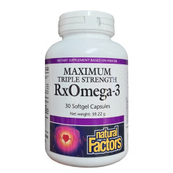 RxOmega-3 Triple Strength рибено масло от Natural Factors изключва всички рискове от замърсяване с живак, кадмий, олово и други токсини, и осигурява високи стойности ейкозапентаенова (EPA) и докозахексаенова (DHA) мастни киселини.