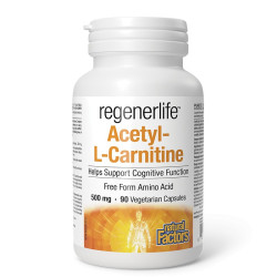 Natural Factors Regenerlife™ Acetyl-L-Carnitine е високо биодостъпна форма на аминокиселината л-карнитин, която поддържа когнитивната функция и насърчава неврологичното здраве. Ацетил-л-карнитинът може да премине кръвно-мозъчната бариера, където има важни клетъчни процеси, свързани с производството на енергия в тялото. Тази формула, без ГМО осигурява клинично значими нива на ацетил-л-карнитин, доставени в удобни вегетариански капсули.