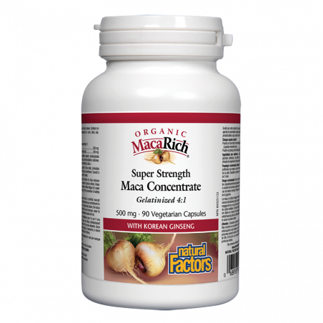 Мака оргáник супер концентрат 500 mg е естествен продукт, комбиниращ екстракти от мака и корейски женшен в подкрепа на нервната система и нормалния тонус. Допринася за възстановяване на енергията и жизнеността, намалява психическия и физическия стрес, и насърчава нормалното функциониране на имунната система. Приемът му се препоръчва в периоди на интензивно умствено и/или физическо претоварване, и емоционална лабилност. Укрепва познавателната функция.