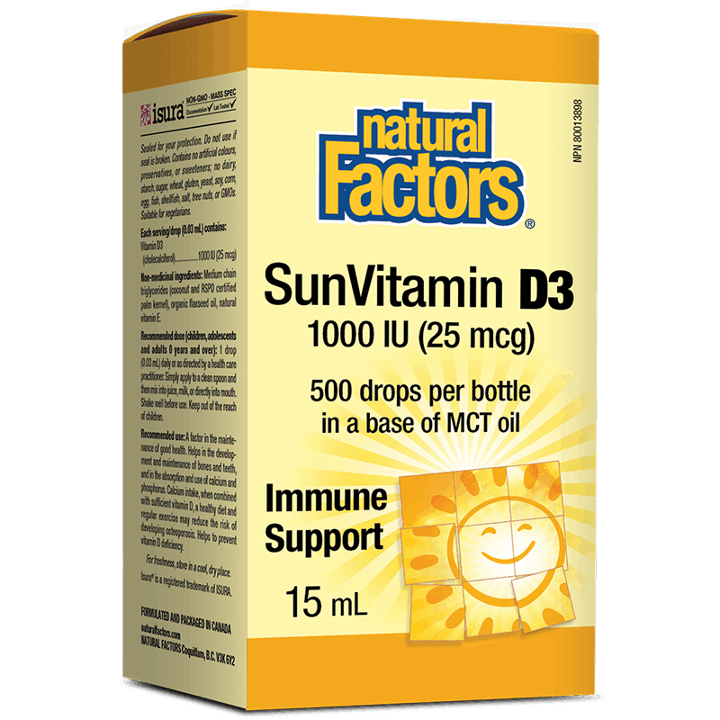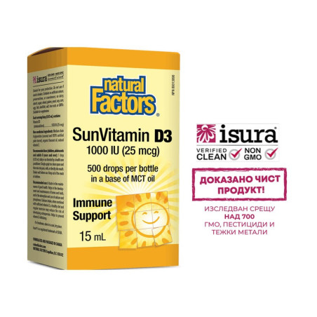 Течният витамин Д3 на канадската компания Natural Factors е естествено получен от ланолин, иззет от овча вълна. В кафява, стъклена опаковка, която го предпазва от окисление. Всяка капка е източник на 1000 IU витамин D3, под формата на холекалциферол! Благодарение на течната си форма, се усвоява бързо и безпроблемно от тялото. Не дразни стомаха.