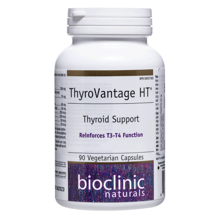 Натуралната формула Thyro Vantage HT™ Тироидна подкрепа е източник на L-тирозин, Z-гуглустерон (биологично активно съединение, чиито източник е етеричното масло от растението гугул), екстракт от ашваганда (Withaniasomnifera), позната още като индийски жен-шен, пантотенова киселина, мед, манган, йод и селен.Синергичното действие на съставките в ThyroVantage HT™ има доказано благоприятелн ефект върху функционирането на щитовидната жлеза в случаите на дефицитно производство на щитовидни хормони.
