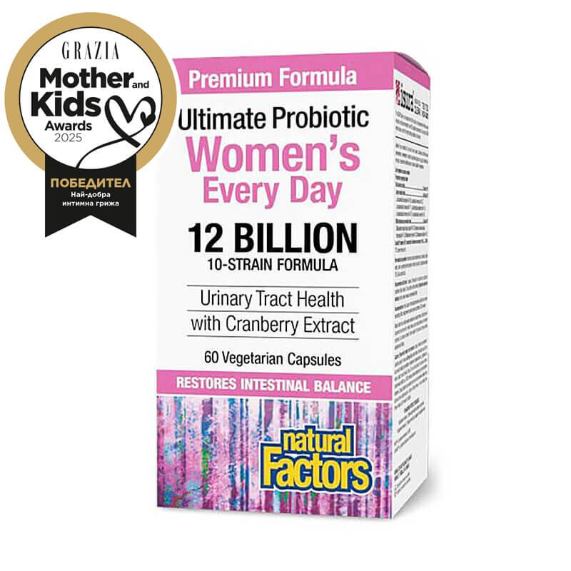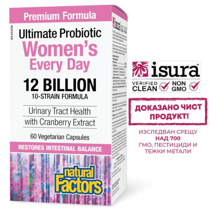 Women`s Multi Probiotic предоставя оптимално количество лактобацили, които потискат растежа на анаеробната флора, поддържат състава на обичайната микрофлора на влагалището и нормалното състояние на пикочните пътища!