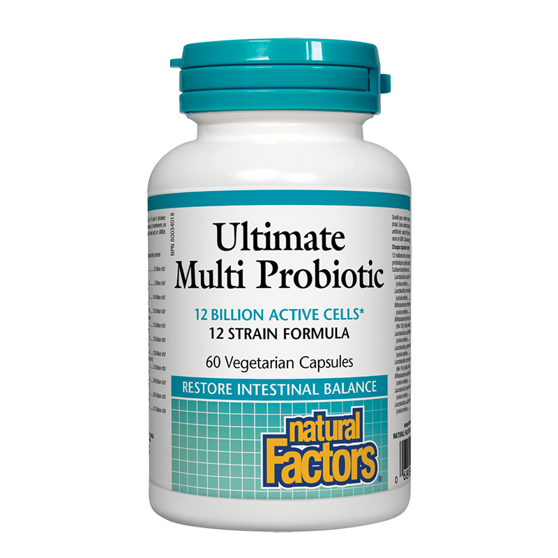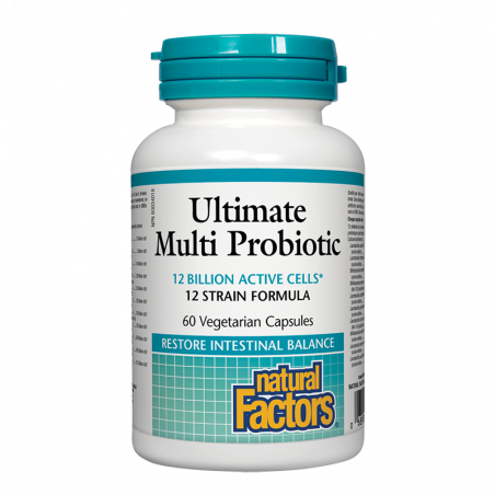 Ултимат Мулти пробиотик е мултищамов пробиотик, доставящ във всяка доза 12 млрд. активни пробиотици. Осигурява живи полезни микроорганизми, които обновяват чревната микрофлора, спомагат за поддържане на естествен чревен баланс, подобряват храносмилането и имунната система. Ултимат Мулти пробиотик е източник на бактерии, смес от 12 специално култивирани пробиотични щама. Тяхното присъствие във формулата е проучено за оптимална съвместимост с човешкото тялото, без риск от загуба на полезно действие при преминаване през киселинната среда на стомаха.