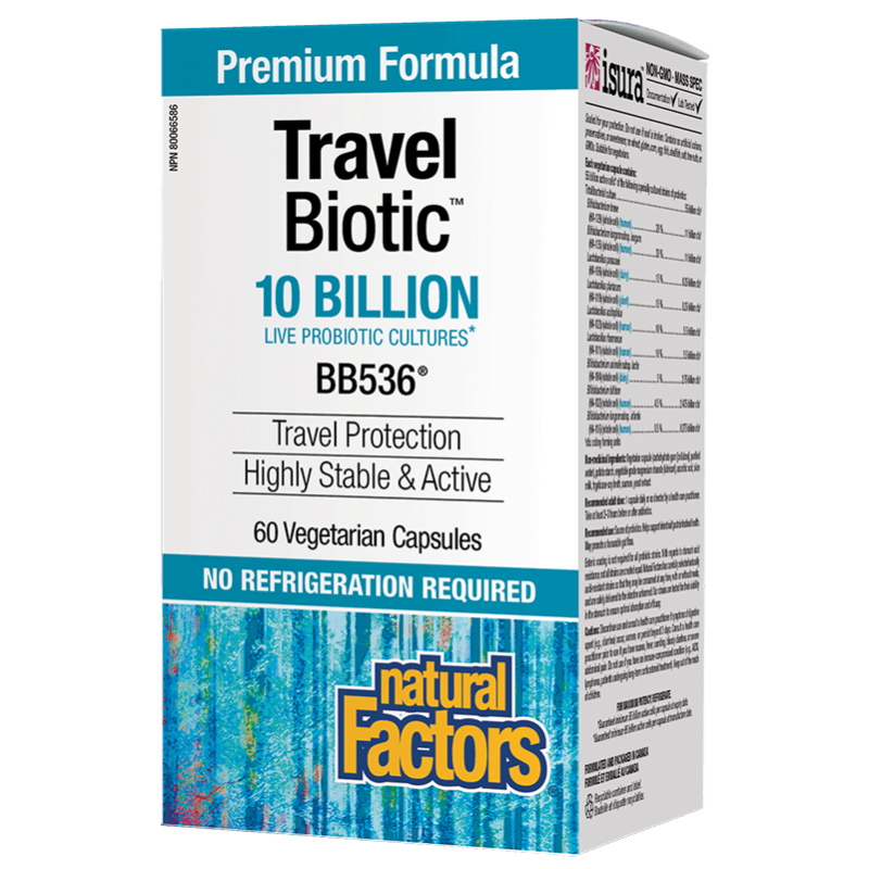 TRAVEL BIOTIC е висококачествен пробиотик, продукт на канадската компания Natural Factors. Доставя патентован пробиотичен щам бифидобактерия – Bifidobacterium longum.