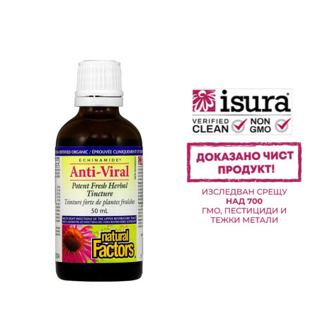 Анти-вирал е билкова тинктура, съчетаваща мощната антивирусна, противовъзпалителна сила на четири лечебни растения – ехинацея, ломациум, астрагал и сладник, в комбинация с имуностимулиращата медицинска гъба рейши. Специализираният екстракт от традиционното северноамериканско растение ехинацея, патентован като Echinamide®, е получен от пресни растения, отгледани и сертифицирани в Канада по методите на органичното земеделие. Всяка от съставките в Анти-вирал има традиционна и проверена във времето ефективност и безопасност.