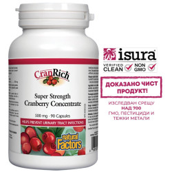 CranRich® е патентован, изцяло натурален, изключително мощен концентрат от плодовете на червената боровинка (Vaccinium macrocarpon). Потенцията му е 36:1, което означава, че 1 грам екстракт съдържа 36 грама червена боровинка от 100% сок. Приемът на CranRich® се препоръчва за профилактика и терапия на уринарни инфекции. Концентратът може да се прилага самостоятелно или в комбинация с назначените антимикробни средства. Продуктът се предлага в икономична опаковка от 90 капсули!