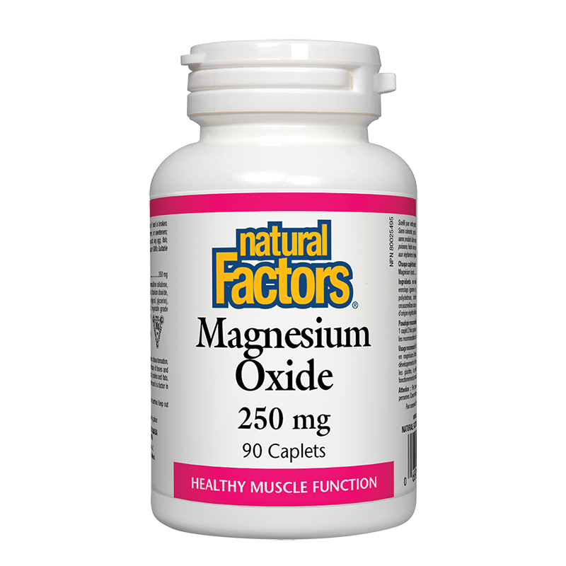 Продуктът на Natural Factors съдържа магнезий под формата на магнезиев оксид. Магнезиевият оксид е отличен източник на магнезий и има висока степен на усвояване.