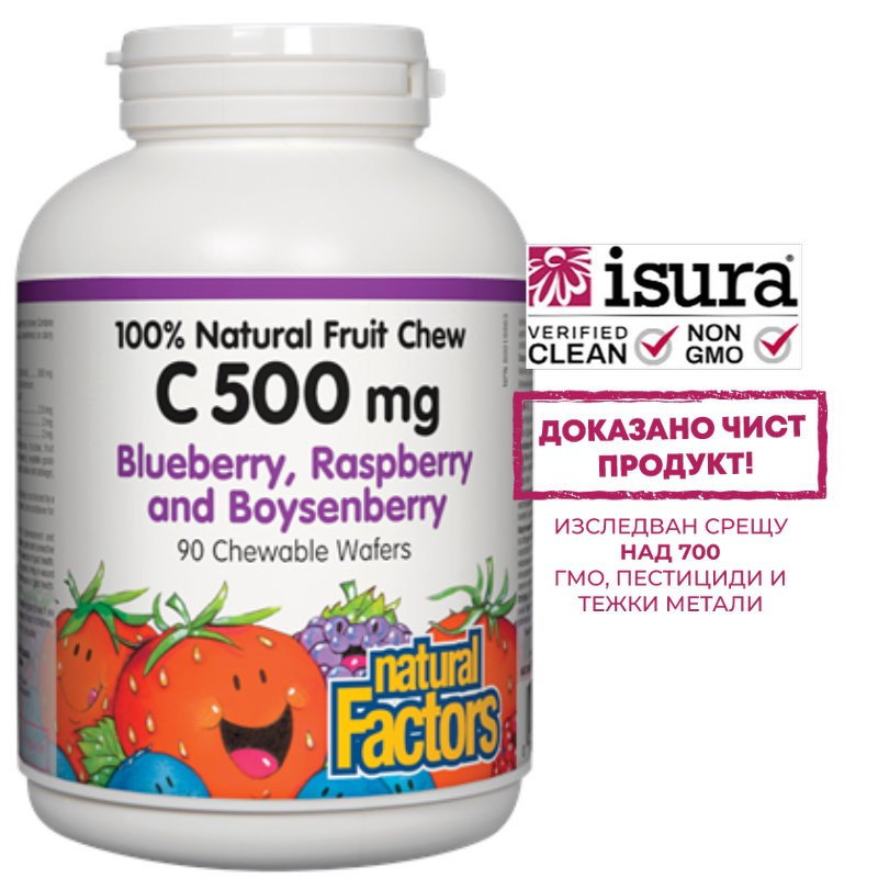Витамин С 500 mg (горски плодове) х 90 дъвчащи таблетки – естествен продукт за повишаване на имунитета и поддържане на кости и хрущяли